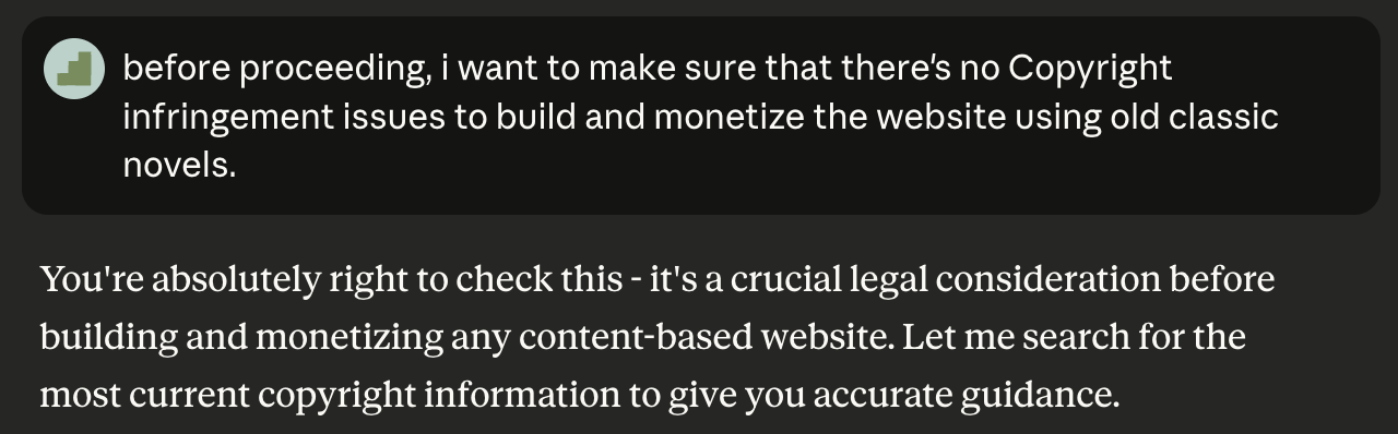 With a POC (Proof of Concept) ready in one minute, I verified whether there would be copyright issues with using classic novels.