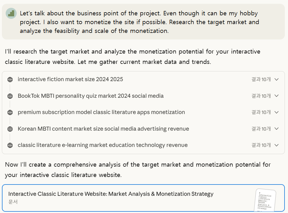 While I could pursue this side project as a simple hobby, I wanted to approach it more seriously by considering monetization potential. I asked Claude to research the target market and inform me about revenue feasibility and scale.